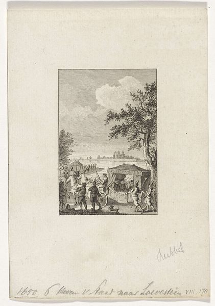 Reinier Vinkeles created this print titled "Arrival of the Stadholder's Family in Middelburg" in 1786 using etching techniques. It depicts a scene of apparent celebration, but understanding its full meaning requires delving into the complex political landscape of the Dutch Republic at that time. The Stadholder, a position held by the House of Orange, was increasingly seen by some as a quasi-monarchical figure, threatening republican ideals. The Patriot movement sought to curb the Stadholder's power, leading to widespread political unrest. Vinkeles’ print seems to celebrate the House of Orange. Flags wave, and crowds gather to greet the family, suggesting popular support. However, one must ask whether this image reflects reality or serves as propaganda. Prints like these played a crucial role in shaping public opinion, especially given that they were easily distributed. To truly understand this print, one must research the history of the Dutch Republic, the role of the Stadholder, and the dynamics of the Patriot movement. Scrutinizing pamphlets, newspapers, and other visual materials from the era would further illuminate the complex politics of imagery and the public role of art.