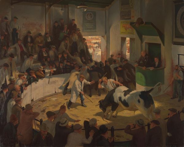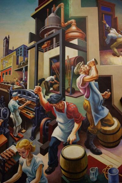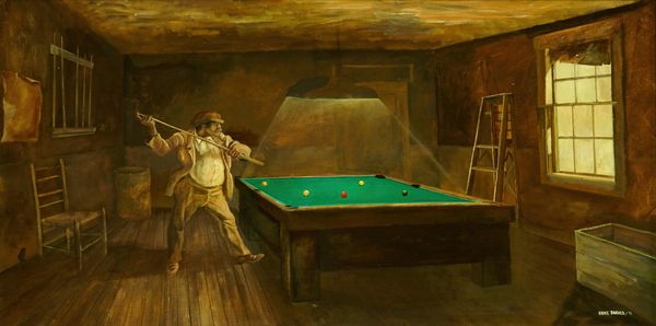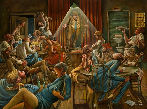 Ernie Barnes made "Life After Sundown" with paint, sometime during his career. The earthy colors and loose brushstrokes tell me Barnes wasn't aiming for realism. It's more like he's capturing a feeling, a moment in time. You can see the process in the way he builds up the layers of color, like a memory being pieced together. I'm drawn to the light filtering in from the doorway, how it illuminates the figures playing cards. The paint is thick here, almost sculptural, giving the scene a sense of depth and weight. But it's not just about the light itself, but the way it casts shadows, obscuring faces, and adding to the mystery of the scene. You can almost hear the murmur of voices, the clinking of glasses, the shuffling of cards. Barnes reminds me a little of Jacob Lawrence, in his commitment to documenting everyday life and the African American experience. But Barnes brings his own unique perspective, celebrating the joy and resilience of his community. Art is a conversation, after all.