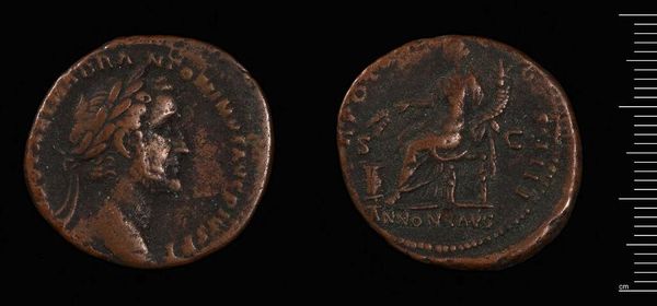 Curator: Here we have an ancient coin, specifically an AE2 of Arcadius, minted in Antioch. Its weight is just over 5 grams. Immediately, the visible wear speaks to its extensive handling and circulation. Editor: The condition certainly lends it an aura of time, doesn't it? It evokes feelings of resilience but also hints at the vulnerabilities of power. How interesting that an object representing power is itself so fragile. Curator: Right, and consider the bronze itself. Its composition, the methods used to cast and stamp it – these were reflections of the empire's industrial and economic prowess. Editor: Yes, the act of minting these coins represents a centralization of power, a state-controlled narrative. The images and inscriptions served as propaganda, reinforcing Arcadius's legitimacy. Curator: And the coin’s physical journey! Each transaction, each hand it passed through – a literal transfer of value and power, reflecting the economic and social realities of its time. Editor: In a way, it becomes a historical actor itself, carrying the weight of societal structures on its very surface. Curator: Exactly. It's fascinating to consider the tangible, material history embedded within this small object. Editor: Absolutely, a reminder that even the smallest things can carry immense cultural and political weight.