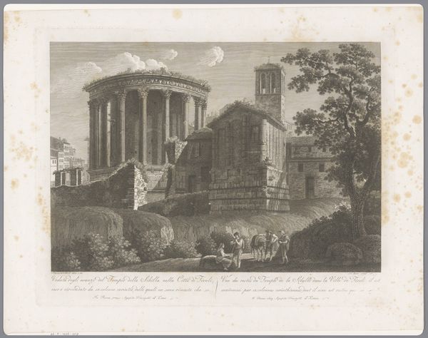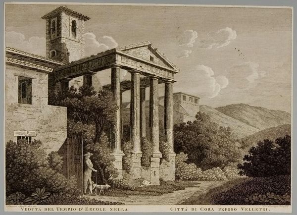 François Morel created this print of the Temple of Hercules near Velletri in Italy using engraving, a method closely tied to the rise of mass media. Engraving demands precision and control. The artist meticulously cuts lines into a metal plate, which are then filled with ink and transferred to paper. The crisp, clean lines and fine details seen here are a testament to Morel’s skill, and also the significant labor involved. It’s a process far removed from the immediacy of painting; each line is deliberate, each mark carefully considered. Prints like this one facilitated the spread of knowledge and ideas, making classical architecture accessible to a wider audience. But it's important to remember the human effort embedded in every impression, a counterpoint to the seemingly effortless reproduction. Recognizing the craft involved in its production is essential for understanding its cultural value. It reminds us of the link between art, labor, and the wider world.