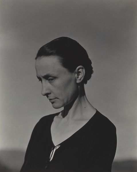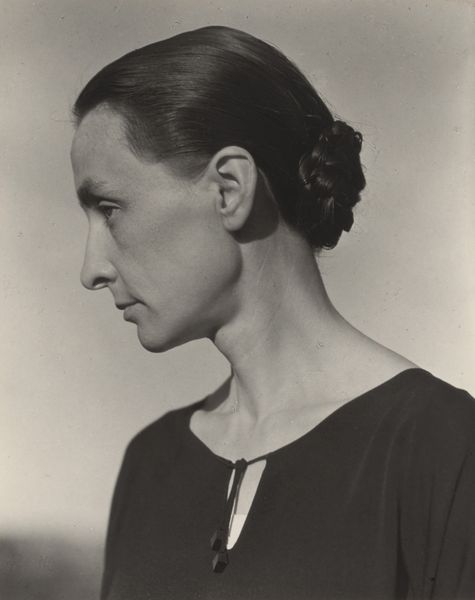 This photograph of Georgia O'Keeffe was captured by Alfred Stieglitz. It is a study in profile, where the subject's face and neck are starkly revealed. The profile, an ancient way to portray someone, evokes the tradition of classical portraiture. Think of Roman coins bearing emperors' profiles—a symbol of power, intellect, and timelessness. In O'Keeffe's profile, the face becomes a landscape itself. The gaze is directed forward, suggesting resolve and an inner intensity. The slight, almost imperceptible tension in her neck carries an emotional charge, a weight of unspoken thoughts and suppressed expression. It reminds me of the restrained emotion we find in Renaissance portraits, where posture and gesture are carefully calibrated to convey a complex inner life. The profile is never neutral. It is an artistic choice to reveal and conceal, a powerful force engaging us on a deep, subconscious level. As such, it resurfaces, evolves, and takes on new meanings in different historical contexts.