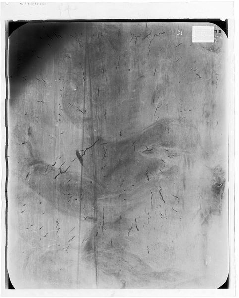 Editor: So, this is an X-radiograph of "Madonna, Child and St. John" by Francesco Rizzi da Santacroce. It’s... haunting, seeing this inner structure. What strikes you when you look at it? Curator: It's a potent reminder that art isn't just surface; it's a material practice embedded in social contexts. The cracks and repairs speak to the passage of time, to labor, and to the economic realities of preservation. Consider the ethics of restoration. Who decides what survives, and why? Editor: That makes me think about accessibility and who gets to engage with art history. Curator: Exactly! This image challenges us to question the narratives we inherit. It highlights the work and the choices, visible and invisible, shaping our understanding. Editor: I hadn't considered the choices made in restoration as a form of interpretation. Curator: Precisely! This challenges us to look beyond simple aesthetics.