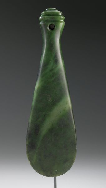 Curator: This is "Vase with leaves," crafted in 1903 by Artus Van Briggle. You'll find this elegant example of Art Nouveau earthenware at The Metropolitan Museum of Art. Editor: Wow, my first thought? It looks like something found deep in the ocean. Curator: Precisely, it embodies the organic forms and sinuous lines characteristic of the Art Nouveau style. Note how the impressed stylized leaves aren't merely surface decoration. Instead, they rise as integral components of the overall shape. Editor: Like subtle currents swirling around a fixed point, there is a gentle upward flow—it almost seems alive, softly breathing. The coloring adds to this organic feel too. Curator: Observe how the glaze pools in the recesses, accentuating the relief. Van Briggle's innovative matte glazes create a nuanced interplay of light and shadow, furthering this sculptural dynamism. It demonstrates an appreciation for natural forms that moves beyond mere imitation to embrace suggestion and symbol. Editor: And the scale is surprisingly intimate, yes? It's not monumental but personal, begging you to run your fingers along the matte, mottled surface, feeling every tiny shift in the material. It’s grounding and mysterious at the same time, like something you would protect, or use to store small trinkets of great significance. Curator: Considering Van Briggle's career began in painting before transitioning to pottery after contracting tuberculosis, one sees parallels between the glazing effects and atmospheric sfumato techniques— Editor: A gorgeous synthesis. It really underscores how something born out of adversity can still bloom into beauty, doesn’t it? Curator: Indeed, reflecting upon this artwork reveals not only Van Briggle’s technical mastery but also a unique artistic vision attuned to the subtleties of natural form. Editor: Yeah. A truly calming piece. Something worth carrying with you into the hectic crush of New York.