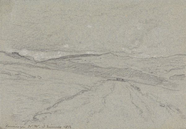 Editor: This delicate drawing, titled "Folkestone," is attributed to John Linnell. It appears to be a pencil and charcoal study of a coastal landscape. There's a real sense of openness to it, almost like a preliminary sketch. What do you make of it? Curator: I see here a deliberate emphasis on the material process itself. Note the stark contrast between the rough texture of the paper and the delicate, almost ephemeral, lines Linnell uses. This immediately throws into question any simple reading of this as a straightforward landscape. Editor: How so? Curator: Well, consider the implications of a drawing like this made with relatively cheap materials, perhaps on-site. Is it a preparatory sketch, a study of light and form, or does its very ‘sketchiness’ suggest something more? The line between "high art" and what we might call "artisan craft" starts to blur when we examine the labour and materials. Where was it made? Who was the artist's target market? These questions shift our attention. Editor: So, you're saying that by focusing on the "how" and "what" of its creation, rather than just its aesthetic qualities, we gain a richer understanding? Curator: Exactly. It forces us to consider the socioeconomic factors surrounding the production and consumption of art in Linnell’s time. We need to explore the industry supporting art creation and appreciation. Editor: I hadn't considered it that way. Now I’m thinking about where he sourced his pencils and paper, and who purchased works like these! Curator: It highlights how a seemingly simple landscape drawing opens a window into the complex material world that shaped its creation. Editor: It really does shift the focus – it’s not just about the pretty scene, but the whole process!