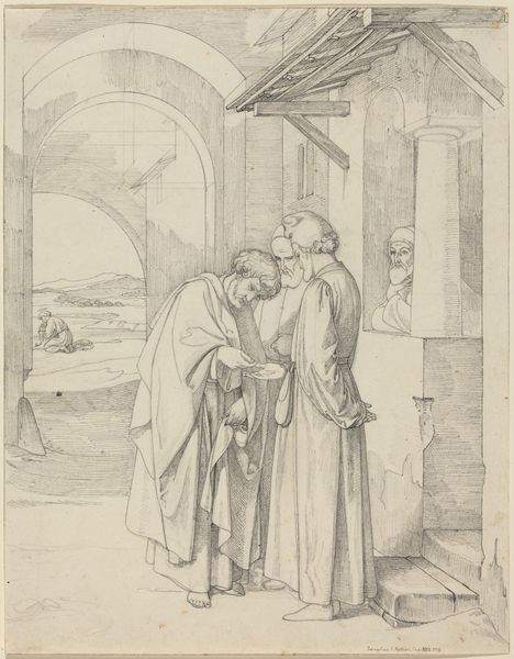 Curator: August Querfurt’s drawing, “Landscape with Riders,” made sometime between 1700 and 1800, beckons us closer. Its subtle power lies in its deceptively simple medium: pencil on paper. Editor: Wow. My first impression is one of quiet melancholy, like a muted memory. The figures on horseback almost fade into the landscape. I see more fatigue than triumph in the scene. Curator: Absolutely, that resonates. Let's delve into that muted quality. This work, typical of Baroque sensibilities, uses landscape not merely as background but to mirror and amplify human drama. Consider the riders. They seem dwarfed, subsumed by the immensity of the setting. Editor: Subsumed, yes! It feels like the land is claiming them. And the drawing itself— the soft gradations of pencil feel like a sigh. It's not about bold pronouncements, it is more a quiet surrender to something larger. The landscape might not be their ally. Curator: And, we should remember the inherent politics of landscape art during this era. Landscapes often served as a way to assert dominion, to visually codify ownership and control. What's compelling here, I think, is Querfurt's disruption of that narrative. These riders don't appear to command anything. Editor: Exactly! They're practically refugees. They are certainly not celebrating any sort of dominion or control in this melancholic tableau. It actually makes you think of climate refugees these days… displaced people seeking a safe horizon. Do you think Querfurt wanted to invite empathy, or perhaps expose vulnerability of leadership? Curator: A crucial consideration. Given the tumultuous political backdrop of the 18th century, such imagery could implicitly critique power structures, reflecting anxieties around conflict and social upheaval. This quietly challenges us to reassess idealized portrayals of authority that pervade art history. Editor: Which suddenly gives it even more… contemporary… edge. Thanks for revealing new depths and context within this quiet drawing, it adds more emotional weight. Curator: My pleasure. Art is powerful when it can ignite dialogues across centuries. I'm very interested in revisiting this one!