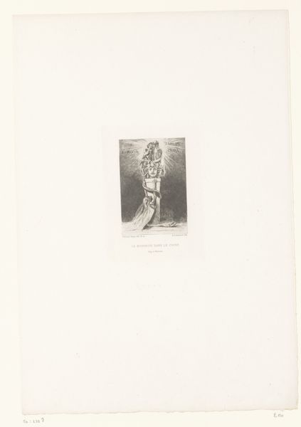 Editor: So, this is "Liggende naakte vrouw, deels achter een gordijn" by Felicien Rops, from 1886. It’s a print housed here at the Rijksmuseum. There's something very dreamlike, or maybe nightmarish, about the shadowy figure and the reclining nude. What jumps out at you? Curator: Dreamlike indeed! Rops often explored the darker undercurrents of society, wouldn't you agree? It's like peering into a hazy memory, or a forbidden desire. Notice how the curtain acts as a veil, obscuring and revealing at the same time. Do you get a sense of voyeurism, perhaps? Editor: Definitely a feeling of being a voyeur! And the way the nude seems to float… Is she sleeping, or is something more sinister at play? Curator: That's the delicious ambiguity, isn't it? Rops was a master of suggestion. Consider the context: the late 19th century, a time of great social and moral upheaval. The piece seems to hint at hidden pleasures, forbidden desires, maybe even the dangers lurking beneath the surface of respectability. What story do you think the artist is trying to tell? Editor: I think you're right; there’s a tension between what’s acceptable and what's hidden. Maybe he is commenting on societal hypocrisy! This has definitely given me more to think about than just the aesthetic of the piece. Curator: Exactly! Art invites us to ask questions, challenge assumptions, and find our own meaning. This piece isn't just about a reclining nude; it's a window into the complex and sometimes contradictory soul of a society. It also inspires one to explore one's personal demons to reflect upon. Editor: That makes me appreciate it much more!