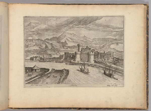 Curator: Hendrick van Cleve III's engraving, "The Emilian Fountain, Greece," presents a sweeping vista rendered with meticulous detail. The atmospheric perspective is compelling, don't you think? Editor: The lines create an almost melancholic mood. It’s as if the crumbling architecture is crying out. There is a clear contrast between the dominating clouds and the busy human figures in the landscape, one being chaotic, while the other is ordered. Curator: Van Cleve was active in the latter half of the 16th century. Viewing this piece through a postcolonial lens, we might ask whose "Greece" is represented here, and for whom? Editor: Structurally, the composition is divided into planes, with the fountain in the foreground establishing a clear focal point. The artist uses cross-hatching to achieve depth. Curator: Indeed, and the fountain, as a source of life and culture, perhaps symbolizes the layers of power and influence exerted over Greek lands during that era. Editor: It’s an interesting play of light and shadow, no doubt creating a somber tone, but the organization is what truly catches my eye. Curator: I appreciate you pointing that out; it reminds us that even landscapes can be potent carriers of historical narrative.