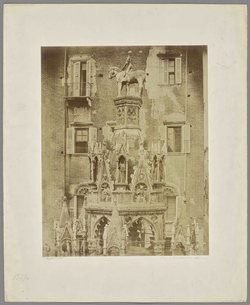 Editor: Here we have a photograph, taken between 1890 and 1920, depicting the south side of St. John's Cathedral in Den Bosch. The photographer is unknown. I'm immediately struck by the intense detail, the sharp angles, and how the scaffolding creates a strong horizontal contrast. What stands out to you when you look at this photograph? Curator: Primarily, the interplay of light and shadow, particularly how it accentuates the architectural structure and detailing. The repetition of vertical elements, those buttresses, creates a powerful rhythm, almost musical in its arrangement. Notice how the photographer uses the scaffolding as a structural element within the composition. It's not merely an obstruction; it contributes to the image's layered depth. Editor: I hadn't thought about the scaffolding that way. So, it's not just a record of construction, but a conscious compositional choice? Curator: Precisely. The photographer uses it to define space, create lines, and contrast the raw texture of the wood with the ornate stone. The photograph transcends being a simple documentation and transforms into an aesthetic exploration of form and texture. Ask yourself how the different sections relate in tone and value. Editor: That's fascinating. I guess I was initially too focused on the subject matter, the cathedral itself, to see the artistic choices. Seeing how you break down the image into structure and light gives me a whole new way to consider photography and, honestly, architecture as well. Curator: Considering those visual components encourages us to engage with an image's visual dynamics beyond surface level observations.
