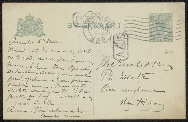 This is a postcard to Philip Zilcken, created by F.M. Melchers, and postmarked in 1918. Consider for a moment the historical context: World War I raged, reshaping Europe's political and social landscapes. In this environment, the simple act of sending a postcard becomes significant. Zilcken, identified as living at Villa Nelena, was likely a member of the bourgeoisie. The card, seemingly a casual correspondence, hints at a network of artists and intellectuals maintaining connections amidst global upheaval. This artifact serves as a reminder of the intimate, personal experiences interwoven with grand historical narratives. The handwritten note invites us to reflect on the ephemeral nature of communication, and the endurance of human connection in times of crisis.