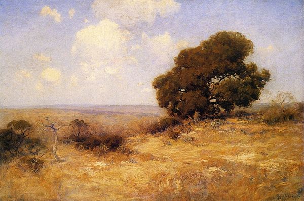 Curator: Here we have Renoir’s painting "Arabs by the Sea," an evocative example of his exploration of genre scenes. Editor: My immediate reaction is to the shimmering quality of light – it feels unfinished, almost like a sketch, yet captures a fleeting moment with real vibrancy. Curator: Precisely. Consider Renoir’s technique. The loose brushstrokes and the way the oil paint is applied capture the effects of light and atmosphere. It draws us to his engagement with Impressionism and its emphasis on fleeting moments. How do you read the "Arabs," their positioning within this sea space? Editor: It seems their figures become almost integrated within the land, an effect that highlights both the local inhabitants but also speaks of a certain romantic exoticism that would have appealed to Renoir’s French audiences. The sea as backdrop lends itself to an escapist vision. How would it have been viewed at its time? Curator: You are right. This romanticized depiction participated in a broader trend of Orientalism within European art during the 19th century. What's interesting is Renoir's move to depict working class in Paris, and later his "exotic" paintings, seemingly feeding public appetite for views that otherize these populations. How does this work resonate with broader impressionistic values beyond this painting being aesthetically interesting. Editor: I agree with the public sentiment of this exotic taste, Renoir also creates works such as these for himself. His landscape background, when contrasted with the detailed figure of his foreground, offers a social perspective that values cultural experiences. Curator: An important reflection about the exchange between the production means for artistic development and market appeal. In looking at the legacy of this work in our present, there's an important tension to recognize between artistic expression, socio-political framing, and commercialized exoticism. Editor: Absolutely. It leaves us pondering how tastes and their production intersect with labor, cultural consumption and the power structures within society at the time, doesn't it? Curator: Yes. It underlines art’s position within social, cultural, and institutional spheres as well as opens a window into understanding art as a social production.