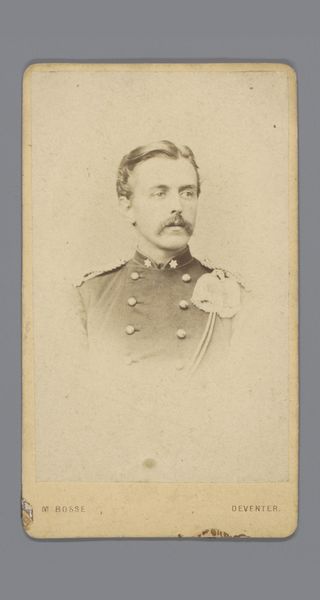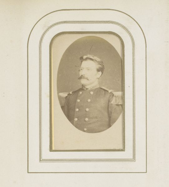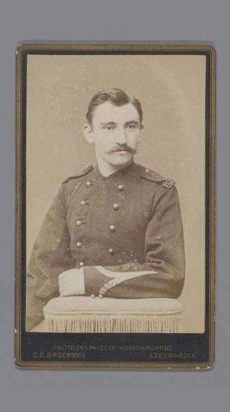 Editor: Here we have Léonard Hubert Zeyen’s “Portret van een man met snor in uniform,” created sometime between 1867 and 1907 using the daguerreotype process. The detail is incredible, especially considering the age of the photograph. I'm curious about how this image speaks to power structures and identity, especially considering the subject's uniform. What do you see when you look at this piece? Curator: I see a carefully constructed performance of masculinity and authority, deeply rooted in the political climate of the late 19th century. Think about what a uniform represents. It's not just clothing, it signifies belonging, loyalty, and adherence to a strict code. Consider, also, the power dynamics inherent in military structures. How does this portrait reinforce those dynamics? Does it perhaps question them? Editor: I hadn't considered the potential questioning. The realism of the piece, that tag jumped out at me, almost flattens the image. What's visible *is* the person, rather than any overt projection. I mean, is there some suggestion that the individual and the structure might be in conflict? Curator: It's subtle, isn't it? The subject's gaze doesn't exude aggression or unwavering confidence. It hints at a more complex internal life, one perhaps grappling with the demands of duty versus personal conviction. Photography in this period was rapidly evolving, both democratizing and further codifying identities. How might class play into this dynamic, or notions of gender, when men are expected to be a specific image? Editor: That tension is fascinating. Thinking about photography's role in both shaping and reflecting identity really changes my perception of this portrait. Thank you for making me see it in an intersectional, social context! Curator: It's been a pleasure to explore the deeper layers of representation with you. Now go change the world with that expanded perspective.