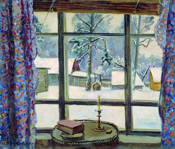 Zinaida Serebriakova painted "Window" using oils on canvas, a traditional medium for artists of her time. The painting's texture is smooth, with delicate brushstrokes that capture the soft, diffused light of a winter day. Serebriakova's mastery of oil paints allows her to create subtle gradations of color, from the cool grays of the window frame to the warm browns and reds of the trees. The painting is a still life of a domestic space, a window view. The wood for the window frame, the glass, the canvas and the paint, are all products of labor, and of industry. Serebriakova engages with the tradition of realism, capturing a fleeting moment in time with accuracy and attention to detail. But she also infuses the scene with her unique artistic sensibility, creating a painting that is both realistic and deeply personal. Looking closely at "Window," we can appreciate the artist's skilled engagement with materials and process, and how it conveys a sense of quiet beauty.