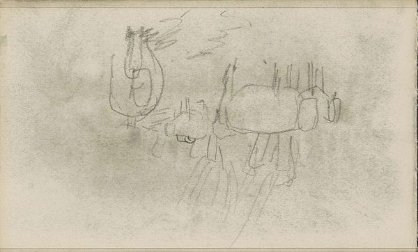 Editor: Here we have Matthijs Maris’s "Langharige geiten," dating from 1849 to 1917. It’s a pen and pencil sketch of long-haired goats on paper, held at the Rijksmuseum. There's something really raw about it, like looking at a fleeting moment captured in someone's personal sketchbook. What's your take on this piece? Curator: Indeed, it gives us a privileged glimpse into the artist's process. Considering Maris's socio-political context, these seemingly simple studies of goats invite us to consider larger questions about rural life and labor in 19th-century Netherlands. Think about the relationship between humans, animals, and the land. How does the sketch aesthetic either reinforce or subvert traditional depictions of pastoral idylls? Editor: I hadn’t thought about it in terms of labor! It seems very spontaneous, a quick capturing of form. So, are you suggesting that even something like this might carry a deeper meaning connected to societal structures of the time? Curator: Absolutely. The apparent ease and spontaneity can be deceiving. Maris was working within a time of immense social change, with urbanization and industrialization impacting rural communities. The very act of choosing these subjects, depicting them in a rudimentary form, might be a commentary on the romanticized views of rural existence versus its harsh realities. Also, consider art education - whose gaze were the students drawing for? How were animals and land being framed to reinforce or undermine established orders? Editor: That’s a powerful way to look at it! I guess I’ve always approached sketches as purely aesthetic exercises, but positioning them within their socio-historical moment definitely changes the way I see this piece and the role of animals in that landscape. Curator: Exactly! By viewing art as a product and a producer of culture, we open up richer understandings of the artist and of ourselves. These sketched goats aren’t just goats, they reflect societal anxieties. Editor: I’ll definitely be keeping that in mind going forward! Thanks for the insight.