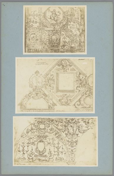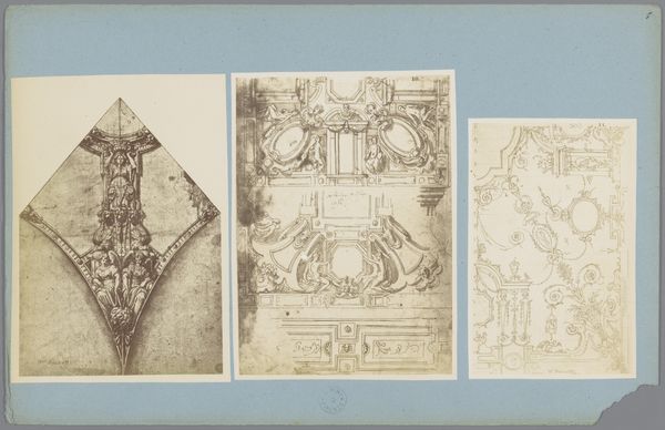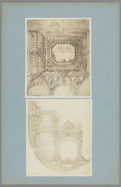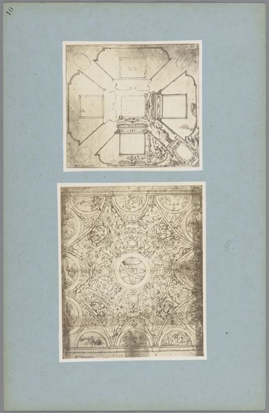 Here we see two photographic reproductions of ceiling decorations by Bernardino Poccetti. Though undated and made by an anonymous photographer, they reveal much about architectural design and the interplay between form and illusion. The compositions are dominated by line, each stroke carefully delineating ornate architectural details and figures. In the upper image, the rendering of celestial bodies draws the eye upwards, creating a sense of dizzying height. The lower image presents a complex grid of octagons and circles, suggesting a vast, ornamented ceiling stretching into the distance. The use of linear perspective, though flattened by photography, manipulates our perception of space. It invites us to consider how architectural design can transform our experience of interior space. These reproductions, therefore, are not mere documents but engage with the philosophical questions about space, perception, and representation.