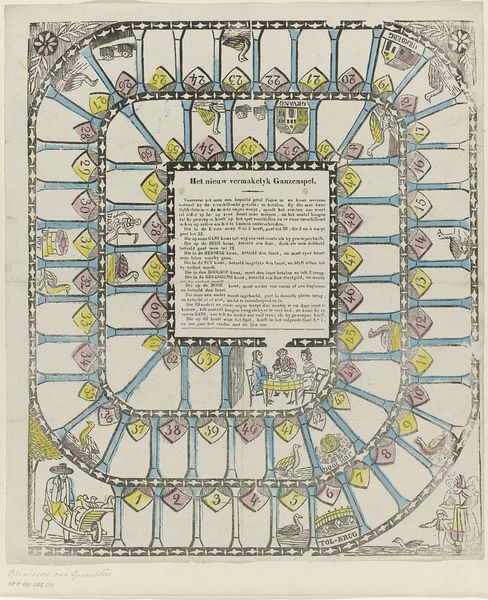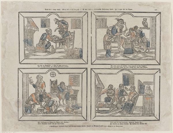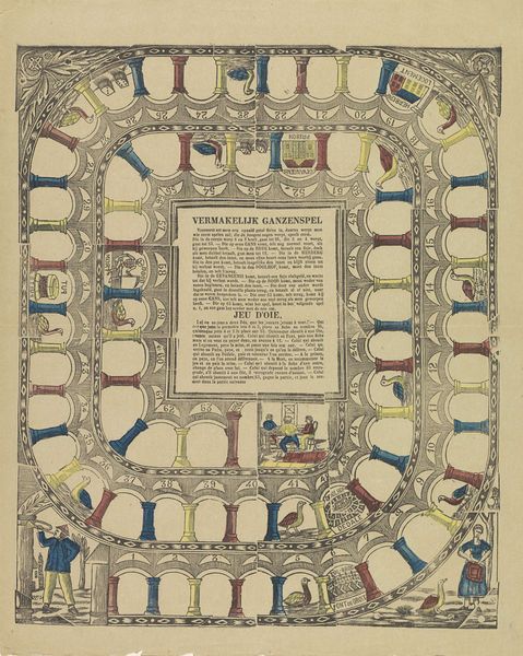 This illustrated print, Den Vaderons in zeven uitleggingen, by Glenisson & Van Genechten, presents seven interpretations of the Lord's Prayer. Its didactic structure and visual style place it within a longer tradition of popular religious imagery, particularly in the Netherlands. The combination of text and image was common in devotional aids, offering accessible ways to engage with religious teachings. Consider the role of printing houses in disseminating these materials. Were they catering to a broad audience, including those with limited literacy? The repetitive nature of the images, each representing a line of the prayer, invites reflection on the relationship between faith and daily life. How might the viewer have used this print in their personal devotions? Was it displayed publicly, or kept as a private object? To understand this work, we would want to examine the history of religious publishing in the Netherlands, and perhaps compare it to contemporary examples of popular piety. These resources would reveal the complex social and cultural context in which such images were created and consumed.