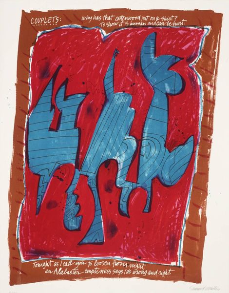 Curator: Here we have an "Untitled Vase Relief" by Betty Woodman. This piece is made from ceramic. Editor: It makes me think of a sun-baked afternoon and a slightly smudged postcard. There's this really joyful, almost childlike, energy in the colors and the… wobbly lines? Curator: Indeed. It’s interesting you say “childlike,” because the so-called “naive art” aspect is often interpreted as a deliberate engagement with primordial forms. Vases themselves are among humanity’s oldest functional objects, dating back millennia, so one could argue there's a potent symbolism in returning to this shape, wouldn’t you say? Editor: Symbolism is good! I'm on board with that. And yeah, there’s a feeling like it's digging into something ancient, or at least feels instinctively like that. Even with the wonkiness, you feel that ancient knowledge in clay form, which makes it incredibly powerful! Curator: Well, a form holds immense power, particularly considering that for many cultures, the vase embodies both a vessel and feminine representation—ideas about emptiness and receptivity come to mind here, a dialogue with form that could resonate with diverse psychological archetypes… Editor: That resonates perfectly. Even the color choices give a feeling of different essences flowing through it, fire, water, like a body hosting those elements! If this vase could speak, it'd probably tell tales about its contents from eons ago! It’s great that Woodman didn't refine everything; these imperfect forms are what give it all such charming character. Curator: I find it captivating how such simplicity evokes those impressions of deep-rooted connections across civilizations through form alone, even though Woodman abstracts those shapes with an obvious modernist inclination toward deconstruction of reality… It does stimulate my own curiosity about visual symbolism, thank you! Editor: And likewise, this piece sparks an imaginative quest… who knew pottery could have such presence?