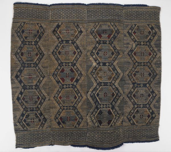 This fragment features a repeating pattern of diamonds, each containing a stylized floral motif, woven in deep blue and gold. The flower, a symbol of life, rebirth, and beauty, appears across cultures from ancient Egypt to the Renaissance. Notice how this motif is encased within a geometric form, a diamond, suggesting containment, or a controlled expression of natural beauty. Think of Botticelli's "Primavera" where Flora scatters flowers, a celebration of spring. But here, the flowers are bound, a controlled, perhaps even repressed vitality. These patterns remind us that symbols don't exist in isolation, they echo and transform across time, engaging our collective memory. The emotional power of such imagery, deeply embedded in our subconscious, continues to resonate, reminding us of the cyclical nature of history and culture.