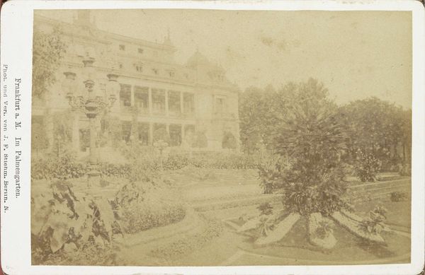 Curator: The piece before us, “British Legation, Teheran,” created by Luigi Pesce in 1858, is an albumen silver print now housed in the Metropolitan Museum of Art. Editor: It's a remarkably muted photograph, almost ghostly. The building appears classical, but veiled behind the soft focus and heavy shadows. A somber portrait. Curator: Indeed. The architecture evokes a kind of colonial imposition of order through its measured, rational design – those precise columns, the repetitive windows. Note, however, the way Pesce frames this rigid structure with the natural, organic overgrowth of trees and foliage. Editor: That natural framing feels like visual pushback. It suggests that while the British sought to plant their architectural and political symbols in foreign soil, the land itself resists, softly blurring and softening the image with its organic presence. Are those even British trees, I wonder? Or something utterly native? Curator: That’s where the symbolic resonance really deepens. The colonnade almost acts as a proscenium, staging the dynamic between colonizer and colonized, a visual encoding of power dynamics rendered with stark geometric forms. The subtle gradations of light and shadow give depth. Editor: Shadow here might mean repression, the obscured nature of intentions, but also time—the inevitable weathering of ideals. It feels incredibly pertinent even now; all the hubris of empire is held in balance with the steady persistence of history, and nature. Curator: Yes. The structure in itself conveys more than just power, but vulnerability: the photograph serves as a reminder of time, how quickly monuments or imperial dreams are taken by nature, and are susceptible to ruin and obsolescence. Editor: In seeing Luigi Pesce’s artwork, I wonder if a classical image can truly encapsulate an image so haunted. Curator: This early photograph prompts reflection on what we see, and even more, on what the past asks of us. Editor: Absolutely, a fascinating exploration of image and metaphor in our post-colonial era.