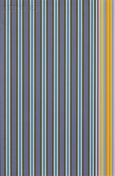 Bridget Riley’s ‘Achaean’ is a vibrant exploration of color and form, carefully constructed from stripes of varying widths and hues, on canvas. Riley's process involves meticulous planning and execution. She often begins with small, hand-painted studies, methodically mapping out the color relationships and spatial rhythms before scaling up to the final canvas. This approach, reminiscent of industrial design, emphasizes precision and control, akin to the work of a skilled craftsman. The optical effects in 'Achaean' are created through the interaction of colors. Riley's keen understanding of perception allows her to manipulate the viewer's experience, creating a sense of movement and depth. This blurring of boundaries between the artwork and the viewer aligns Riley’s practice with traditions of visual experimentation. The systematic method allows a sense of objectivity, almost like a factory production line, whilst engaging with color theory and perception. 'Achaean' challenges traditional distinctions between fine art and craft. By emphasizing the importance of material, making, and perception, Riley invites us to reconsider how we understand the full meaning of an artwork.