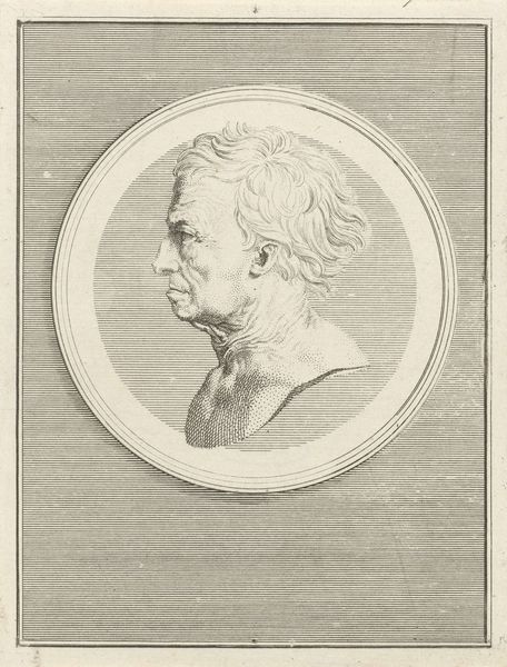 Editor: Here we have a print from 1746 by Jan Caspar Philips, titled "Portret van Tiberius Gemellus." It's an engraving, and the fine lines give it an almost coin-like appearance. What stands out to me is the framing, the way the central portrait is presented within these coin-like circles and textures. What catches your eye? Curator: I think it is key to acknowledge how this print operates within the political landscape of imagery. Consider the act of creating and disseminating images of rulers, even those long deceased. What purpose might that serve in 18th-century Europe? Editor: Hmm, to connect current rulers with the perceived glory of the Roman Empire? To legitimize their power? Curator: Exactly! Neoclassicism wasn't merely an aesthetic preference; it was a carefully constructed visual language designed to evoke authority and a sense of continuity with a powerful past. Even the very act of creating reproducible images, like this print, broadens its reach and amplifies its political effect, no? Editor: That's fascinating. I hadn't considered the dissemination aspect. Does the choice of Tiberius Gemellus specifically carry any weight, beyond him being Roman? Curator: Good question. While not the most prominent Roman figure, his image contributes to the broader narrative of Roman authority. And the print is presented within a series – what do you imagine the impact would have been by being one of many historical portraits like this, circulating in a book or as individual prints? Editor: Creating a cumulative effect of historical validation, I suppose. I see how this artwork functions on multiple levels now. Curator: Precisely! Thinking about art in terms of its social function opens up whole new avenues for interpretation. Editor: I will certainly keep that in mind! Thanks, that really gave me a new understanding of this piece.