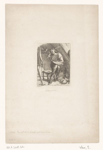 Jan Stobbaerts created this etching, "Dog in a Hutch," in Belgium, likely towards the end of the 19th century. The image captures a dog confined within a cramped, rustic enclosure. The artwork invites us to consider the social standing of animals, particularly domestic ones, in Belgian society at that time. Was this confinement typical, reflecting a utilitarian view of animals? Or does the dog's melancholy posture suggest a critique of such treatment? Stobbaerts, known for his sympathetic portrayals of rural life, might be subtly commenting on the living conditions of both animals and the working class. Further research into animal welfare movements of the era, as well as the artist's biography, could reveal more. This artwork reminds us that even seemingly simple images carry complex social and ethical considerations, and it's up to us as historians to unpack them.