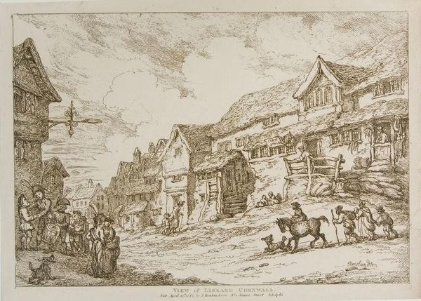 Franciscus de Bargas created this print, "Village scene with cattle traders and travelers in front of an inn", which offers us a glimpse into the society and economy of the Dutch Republic. The print throws light on labor, trade and social interactions within a small community. We see merchants, travelers, livestock and farmers all intersecting, illustrating the ways in which rural economies functioned. Inns were not merely places to rest, but essential hubs for commerce, news, and social exchange. Gender dynamics are subtly present: women peeking from windows, yet men dominate the outdoor arenas of trade and negotiation. De Bargas invites us to reflect on the lives of ordinary people, the backbone of the Dutch Golden Age. The print acts as a historical document, revealing a society in motion. It's a portrayal of the collective, where individuals' livelihoods and social roles are deeply intertwined.