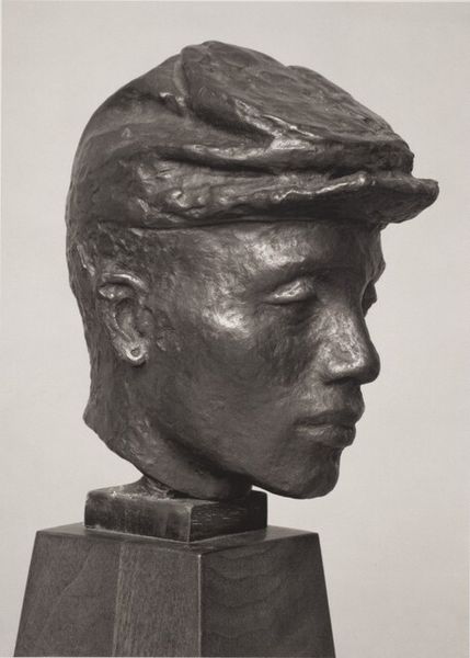 Editor: So, this is Ernst Barlach's portrait bust of Tilla Durieux. It's bronze, with this imposing, almost stoic expression. What's your take on it? Curator: Barlach created this in a time when women, particularly actresses like Durieux, challenged societal norms. How does the sculpture reflect Durieux’s complex role in society, her influence and her own struggles for autonomy in a male-dominated world? Editor: Hmm, I see what you mean. Her gaze is really intense. Curator: Exactly! Her presence is undeniable, which speaks to the power dynamics she navigated. Editor: That gives me a lot to think about, thank you. Curator: It's a conversation, isn't it? Between the art, the artist, and us, in our own time.