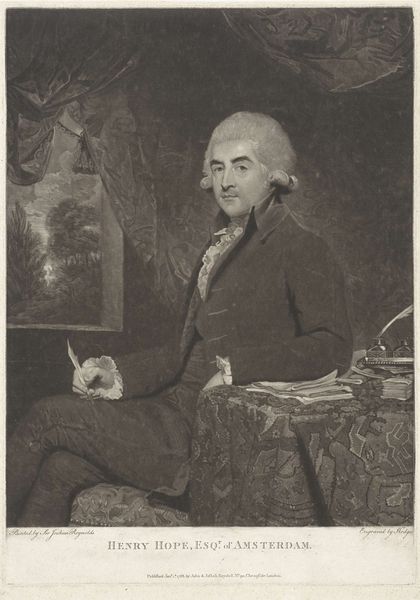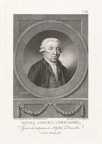 Curator: This is a print of Lord Kilwarden by Francesco Bartolozzi. Bartolozzi, who lived from 1728 to 1815, was quite renowned for his stipple engravings. Editor: He's gazing intently, almost like he's about to deliver some grave news. It has an air of dignified solemnity about it. Curator: Considering its historical context, this portrayal of Lord Kilwarden possibly served to solidify his legacy within legal and political circles of the time. Editor: Funny, the loose robe makes him feel less rigid, even approachable. It’s a strange mix of gravitas and vulnerability. Curator: Indeed, prints like this offered a visual representation of power, carefully cultivated for public consumption. It humanizes him, while reinforcing his station. Editor: I’m left wondering about the stories etched into his expression, lost to time yet palpable in the details Bartolozzi captured.