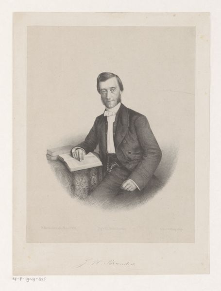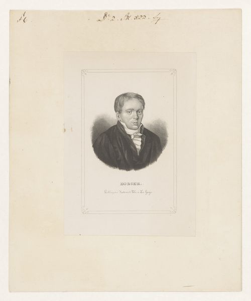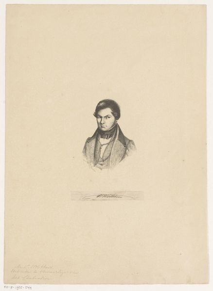 Curator: A striking portrait. I am immediately drawn in by the subject’s gaze. Editor: It's quite arresting. The severe clarity of the engraving against all that paper...a stark, formal presentation. Is this the work of Ferdinand Lehman? "Portret van Armand Carrel," they're calling it. A print dating sometime between 1820 and 1900. Curator: It captures more than just a likeness; there's an element of Romantic heroism there, don’t you think? The tightly controlled details convey seriousness. The shadows lend to a quiet air of defiance. Editor: Absolutely. The use of hatching and cross-hatching is masterfully controlled, isn't it? Notice how Lehman uses the density of lines to define form, create depth. The tight focus keeps all attention directed to Carrel’s stern, expressive face. The materiality enhances this—the cool detachment. Curator: Precisely, this control also speaks to the sitter's persona. Carrel, of course, was a well-known political figure, a republican journalist who fought against censorship. So, what at first might seem like artistic style also becomes a potent symbol of character and moral strength. The very act of immortalizing him through the controlled lines of an engraving solidifies his legacy. Editor: I'm curious about that. You think there’s intent behind Lehman's rendering beyond accurate reproduction? Is it a political endorsement of sorts? Curator: It’s almost inevitable to read it that way given Carrel’s history. Even the fact that this image would have been multiplied and distributed widely contributes to an evolving narrative. The engraving itself becomes part of his ongoing political message. Editor: Fascinating how even seemingly austere formal choices—the severe line work, limited tonal range—can speak to much larger ideological currents, cultural struggles. The image, thus, becomes less a frozen depiction of one man and more a living, breathing record. Curator: Indeed, a convergence of personality and epoch, technique, and purpose. The weight of history contained in a few precisely etched lines. Editor: An eloquent testament to how method can both reveal and obscure truths.