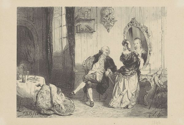 Pavel Fedotov's "Difficult Bride," a small oil on canvas, presents a tense domestic scene, rich in colour, texture and dramatic potential. Fedotov masterfully uses the composition to create narrative tension. The deep, saturated reds of the walls and heavy drapery contrast sharply with the pale, almost sickly complexion of the bride. The tightly arranged interior emphasizes the claustrophobia of the moment, while the figures peering from behind the curtain add an element of voyeuristic unease. The artist is also playing with the tradition of arranged marriage and the commodification of women. The careful arrangement of objects—the discarded hat, the birdcage, and the ornate furniture—functions as a semiotic system, each element contributing to the overall sense of unease and constraint. Fedotov's use of texture, particularly in the rendering of fabrics and surfaces, adds depth to the scene, inviting closer inspection of its psychological complexity. This invites us to question the social structures that define these relationships.