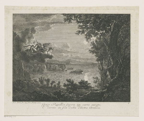 Jacques Philippe Le Bas created this print titled 'Bathing Women near a Ruin' in France during the 18th century, a time when the aristocracy were developing a taste for naturalistic scenes. The print's subject matter, a group of nude women bathing near classical ruins, connects to a broader cultural interest in antiquity. The ruin could allude to the transience of human achievement, a popular theme in art and literature during this period. Alternatively, it may refer to the archaeological digs that were taking place in Italy. Through visual cues such as the classical architecture, idyllic landscape and reclining nude figures, the image creates an association with classical art. The naturalism and informality of the scene, however, speak to a developing progressive aesthetic in French art, but at the same time it comments on traditional structures of class and gender. To understand the print more fully, researchers might consider consulting archives that document the archaeological movement. Examining period literature on aesthetics can also provide insights into the contemporary understanding of ruins and the nude female form in art. This will give us a greater understanding of the social conditions that shaped the production of this artwork.