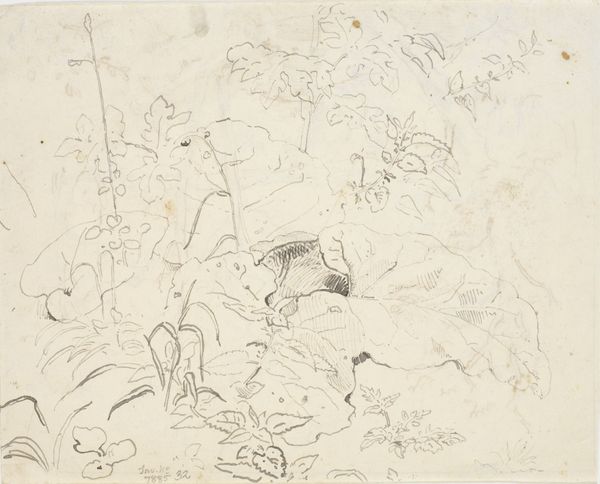 Curator: John Singer Sargent's "Sketch of Arbutus", held here at the Harvard Art Museums, offers us a glimpse into his process. It's an intimate study, about 9 by 11 inches. Editor: It feels like a whisper, doesn't it? A fleeting moment captured with such delicate lines, the arbutus almost floating on the page. Curator: Sargent was known for his portraits, of course, but these nature studies reveal a different side—a quiet appreciation for the natural world, free from the constraints of patronage. These types of sketches weren't usually displayed, or considered part of his artistic brand. Editor: It's like eavesdropping on his private thoughts. Did these sketches inform his larger works, I wonder, or were they simply a form of meditation? What did he care about, when nobody was looking? Curator: Perhaps both. Either way, it offers a valuable lens into Sargent's artistic identity. Editor: Yes, like a secret garden, glimpsed through a crack in the wall.