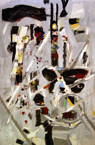 Curator: Wow, the first thing that hits you is this overwhelming sense of introspection, right? That muted palette and dissolving form. It's like a memory struggling to hold itself together. Editor: Indeed. This painting is entitled “Self-portrait as Charles Darwin” by Adrian Ghenie. It's a really compelling example of how Ghenie grapples with history and identity, using oil paint to create a textured and almost visceral experience. Curator: Visceral is the perfect word. You see the pose, the iconic beard, and there’s Darwin. But his face! It’s so distorted, almost melting. Like the weight of his own revolutionary thinking is consuming him, or the artist? It’s unnerving, in a strangely beautiful way. Editor: Ghenie is known for inserting himself into these historical narratives, almost as a form of commentary. Darwin, with his theory of evolution, shattered existing paradigms. Perhaps Ghenie is reflecting on how art itself can be a disruptive force, challenging conventions. I find myself thinking about how the legacy of Darwin has played out over the 20th and 21st centuries and what an artist like Ghenie makes of that, painting today. Curator: Absolutely, and you can almost feel the influence of artists like Francis Bacon in the way the face is rendered. It's not just a likeness; it's a raw emotional landscape. And the surroundings, the hints of other paintings in the background… Is he in his studio? Is it chaos of his creative process reflecting back to him? Editor: That ambiguity is key. The setting isn't clearly defined. It contributes to this sense of unease and the instability of the self that the portrait conveys. He’s collapsing the boundaries between past, present, and this space in the middle. Curator: It really makes you question the solidity of identity itself. Are we just the sum of our experiences, constantly evolving and dissolving? Dark thought maybe. Editor: It is, but great art often forces us to confront those kinds of unsettling truths, and reflect upon their legacy, too. Curator: Ghenie gives us plenty to reflect on in that regard. Thank you for the background! Editor: My pleasure.