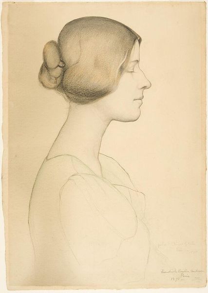 Charles Dana Gibson's "The Gibson Girl" is rendered with ink on paper, showcasing a portrait enclosed within an oval format. The composition, primarily in monochrome, emphasizes line and form, creating a striking visual impact. The drawing's structure hinges on Gibson's use of flowing lines to define the sitter’s features and particularly her elaborate hairstyle, which dominates the upper portion of the artwork. The tonal variations, achieved through hatching and cross-hatching, give depth to the figure and set her against the plain backdrop. The overall effect is one of idealized beauty, characteristic of the era's aesthetic preferences. By reducing the palette to simple black ink against a neutral background, Gibson directs attention to the graphic qualities of the work. The focus on linear precision and elegance underscores how illustrations could create and disseminate cultural ideals. This image invited viewers to decode what it meant to be a modern, independent woman. "The Gibson Girl" encapsulates the evolving narratives of identity and representation at the turn of the century.