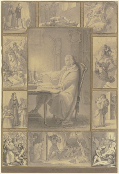 Leonardus Venroy made this composite portrait of the Princes of Orange using etching and engraving, likely in the 1700s. The material here, paper, is humble, but the techniques involved are anything but. Etching and engraving demand tremendous skill; each line is incised with a sharp tool, or bitten into the surface with acid. Look closely, and you can see the different qualities of line achieved by these two methods – the clean precision of engraving, versus the more spontaneous character of etching. The printmaking tradition has a rich history, particularly in disseminating imagery and information to a broad public, think of maps and printed news. In this case, the portraits celebrate power; these are not spontaneous likenesses, but carefully constructed images intended to convey authority. While the print medium democratizes access to these images, it also reinforces the social hierarchy they represent. Ultimately, this work reminds us that even seemingly simple materials can be vehicles for complex social and political meanings. The convergence of craft, technique, and social context is what gives this seemingly straightforward print its enduring fascination.