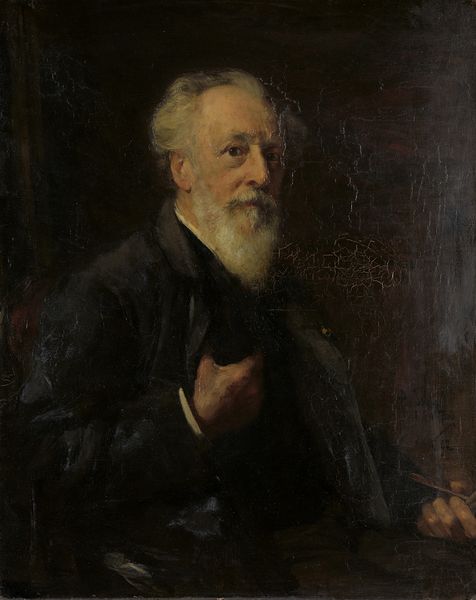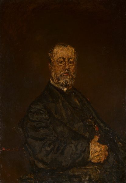 Franz von Lenbach painted this portrait of Prince Regent Luitpold of Bavaria in oil on canvas. Lenbach was a master of capturing likeness, and here the Prince’s features emerge from a dark, indistinct background. The visible brushstrokes and layered paint create texture, most notably in the Prince’s beard, giving the painting a tangible quality. Lenbach’s skills reflect a long history of artistic tradition, honed through years of practice and apprenticeship. Yet, portraiture like this also reflects the social and economic conditions of its time. The Prince's status allowed him to commission this work, providing income for the artist and his studio. Oil paint, though a traditional medium, was commercially produced and widely available, linking the artwork to broader systems of trade and consumption. Considering the materials and processes used reminds us that art making is always intertwined with social context. It challenges us to look beyond the image and appreciate the work as a product of skill, labor, and material culture.