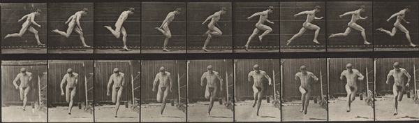 Plate Number 153. Jumping, running straight high jump, by Eadweard Muybridge captures a series of movements through chronophotography. In the late 19th century, Muybridge sought to dissect motion, driven by both scientific curiosity and perhaps a desire to exert control over the unruly, unfixed world. This work reflects the Victorian era's fascination with categorizing and understanding the human body. The photographs also reveal a gendered and racialized dimension, as Muybridge frequently photographed nude or semi-nude male bodies, often athletes, reinforcing notions of white, male physical prowess. The depiction of the male body is laid bare for study, as both a symbol of power, and a body to be disciplined. The work invites us to reflect on how bodies are historically placed under surveillance, studied, and often judged, in order to either maintain traditional norms or develop alternative narratives. It captures an enduring quest to comprehend and control the human form, which reflects societal ideals and power dynamics.