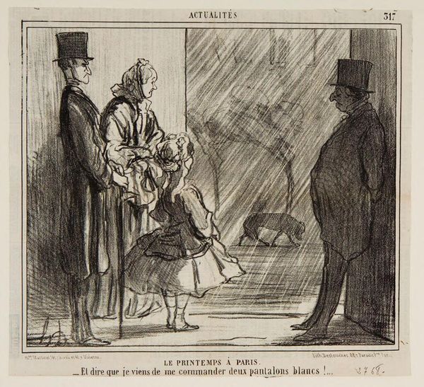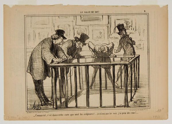 Editor: This is Honoré Daumier's "Beautifications of Paris...The Court of the Louvre." The lithograph seems to critique urban renewal. What's your perspective on Daumier's focus here? Curator: Consider the materiality of printmaking itself. Daumier mass-produced these images, democratizing critique. His labor mirrors the workers' labor in the scene. Editor: So, it’s about the process of making and consuming art, not just the image itself? Curator: Exactly! The act of distributing these critiques challenges the very system he depicts, highlighting the consumption of "beautification" for the elites. Editor: That gives me a new way to understand it. Thanks!