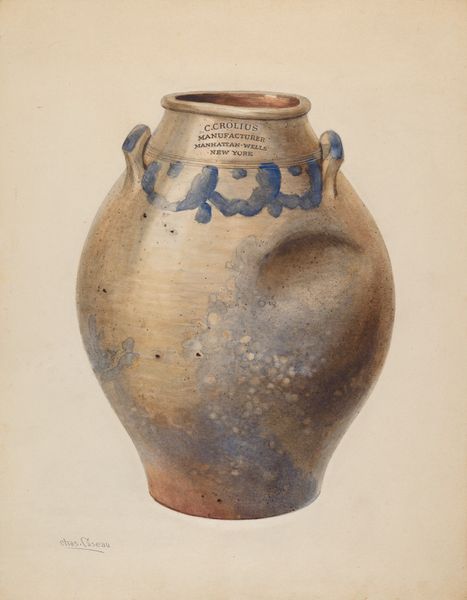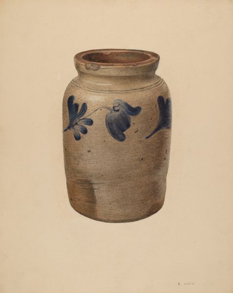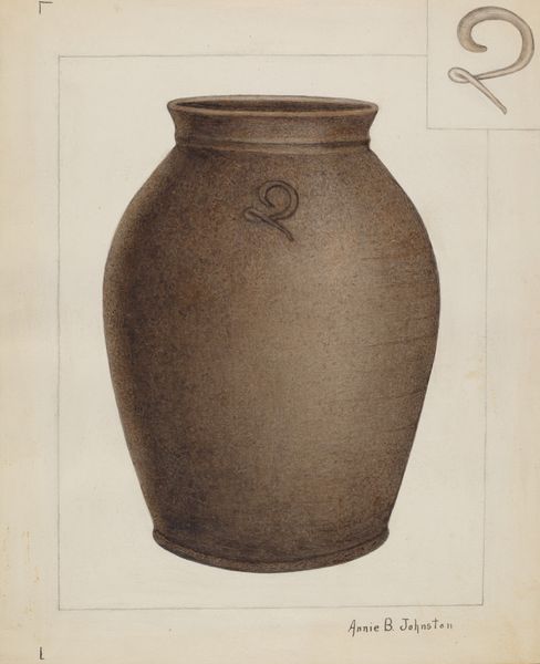 Yolande Delasser made this watercolour painting of a Crock, we don't know exactly when, but the lack of confidence in the lines suggests an understanding of artmaking as a process, rather than a pursuit of perfection. The earthiness of the muted browns and grays gives a grounded, almost tactile quality, inviting you to imagine running your hands over the cool, rough surface of the pottery. Look closely, and you'll notice subtle variations in tone, achieved through delicate washes and layered strokes of the brush. See the way the artist has rendered the scalloped decoration? Each curve is carefully delineated, with a slight, almost imperceptible wobble that gives the pattern a human touch. Delasser's Crock reminds me of Morandi's still lifes, where everyday objects are transformed into subjects of quiet contemplation, asking us to slow down and appreciate the beauty of the mundane. There's a humility in this approach, an embrace of imperfection that feels both refreshing and deeply resonant.