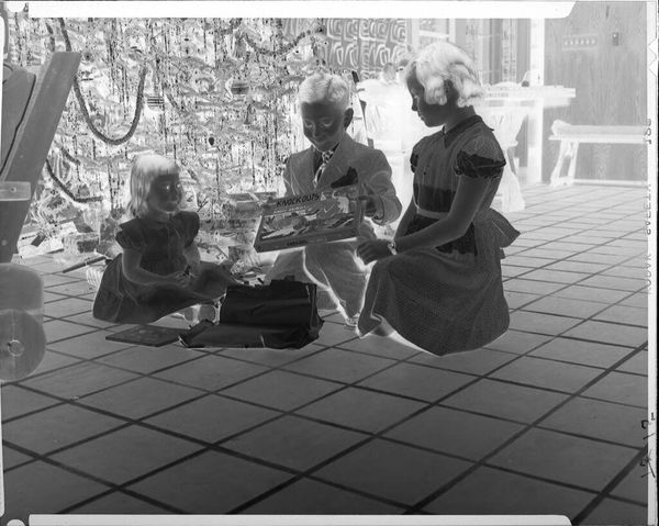 Editor: This is an untitled photograph, likely from around the mid-20th century, by Lucian and Mary Brown, depicting a little girl with a baby carriage. There's something haunting about the negative image. What do you see in this piece? Curator: It's a curious echo of childhood, isn't it? The inverted tones lend a dreamlike quality. I wonder about the choice to present it as a negative. Is it a comment on memory, how the past often feels like a faded, reversed image? Or is it simply a technical artifact, revealing the photographic process itself? Perhaps both? Editor: That's interesting! I hadn't thought about the connection between the negative and memory. Curator: It's just a thought, of course. The beauty of art lies in its ambiguity. We each bring our own experiences to the table, don't we? It's a conversation between the artist, the artwork, and ourselves.