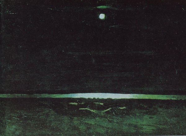 Editor: We're looking at "Red Sunset," an oil painting from 1908 by Arkhyp Kuindzhi. The overwhelming impression is one of tension, a sort of quiet drama unfolding in the sky. How do you interpret this work, especially given its historical context? Curator: What I see is a potent expression of Romanticism intertwined with the rise of the Russian avant-garde, a movement deeply engaged with social and political upheaval. Think about it: what does a vibrant sunset, almost violently red, communicate at the dawn of a century marked by revolution and rapid industrialization? Does this dramatic landscape become a symbolic space reflecting both the beauty and the potential brutality of change? Editor: So you see this not just as a pretty picture, but as a reflection of the anxieties of the time? Curator: Precisely. Kuindzhi lived in a society grappling with identity, class, and power. The striking, almost theatrical light feels defiant, perhaps even a call to attention amidst the societal darkness. Consider also the racial and ethnic tensions brewing within the Russian Empire at this time; do you see the intensity of the light and dark as reflecting these binaries, demanding a reckoning? Editor: That's a really interesting perspective. I hadn't considered the painting as engaging with those political elements so explicitly, but that adds a whole layer of depth. Curator: It requires us to challenge what we consider merely ‘aesthetic’ and to view artworks as active participants in societal conversations, especially during transformative eras. Can a landscape also serve as protest? Editor: I guess it can. Now I see how relevant this painting really is today; the visual power certainly makes more sense in context. Thanks! Curator: Indeed, a landscape is never *just* a landscape.