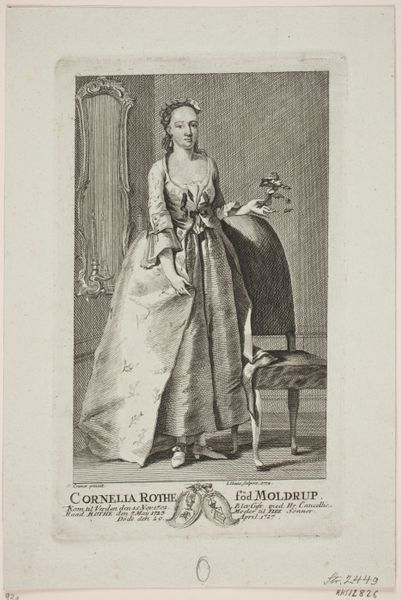 This print, "Cornelia Rothe," was made by Jonas Haas in the 18th century. It's an etching, meaning the image was incised into a metal plate, inked, and then printed. Look closely, and you can see how the density of the lines creates areas of shadow and light. The choice of printmaking, rather than painting, is important here. While oil on canvas was the traditional medium for portraiture, etching was more closely associated with commercial production. It allowed for multiples to be made, satisfying a growing demand for images among the middle class. And while the sitter here clearly belongs to the upper echelons of society, her representation in this form speaks to a subtle shift in the function of art. By focusing on materials, making, and context, we gain insight into the changing social and economic landscapes of the 1700s.