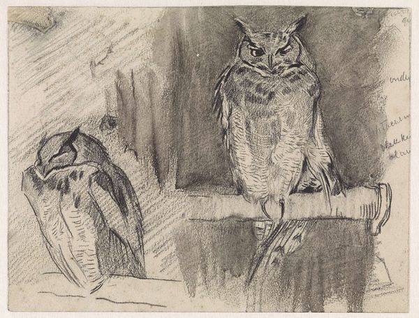 Curator: This lithograph is titled "Owls," by Stow Wengenroth, who lived from 1906 to 1978. Editor: Oh, they look like they're judging me. A very serious couple of owls, indeed! Curator: The owls might symbolize different things depending on your perspective, often associated with wisdom, but also with the night, with the hidden, even with death. Editor: Right! I think it's the contrast of dark and light in this piece; the artist rendered their plumage so meticulously. It gives them this almost severe, knowing presence. Like they hold some secret. Curator: That contrast might reflect broader societal anxieties of his time, the ever-present tension between knowledge and ignorance, between safety and threat. Editor: I love that idea. It makes me think, what secrets are they keeping? Curator: Perhaps secrets we should all reflect on. Editor: Indeed, and maybe keep a few of our own.