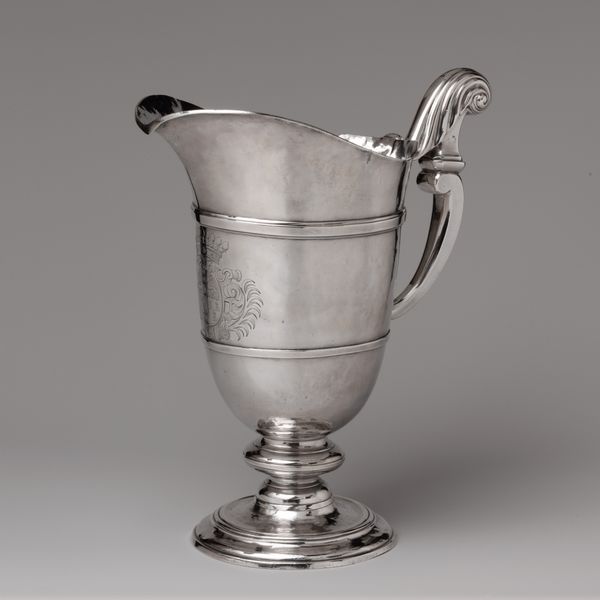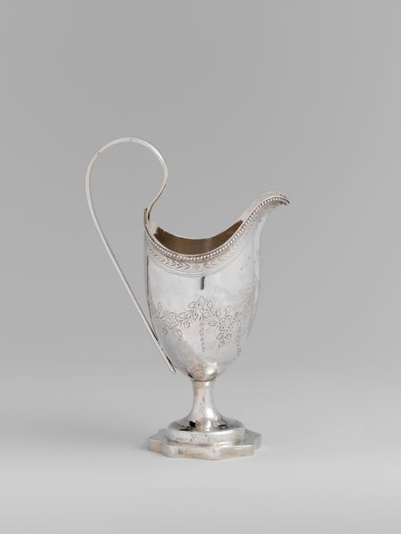 Editor: Here we have Hugh Wishart's "Creamer," crafted between 1790 and 1810 from silver, metal, and ceramic, currently residing at the Met. It has a quiet, dignified air, almost like a miniature monument. How should we interpret this domestic object? Curator: Think about the context, the late 18th century. What did this Creamer represent socially? Consider its materiality. Silver signified wealth and status. It's not *just* a functional object; it speaks to power dynamics, privilege. Who owned this, and who *didn't*? Editor: So, it's less about the creamer itself and more about the society it inhabited? What do you think Wishart's intention was by choosing these specific materials and this form? Curator: An artist like Wishart likely wasn't consciously challenging social hierarchies, but they were certainly participating in a system that reinforced them. Crafting such an object cemented class divisions; it literally embodied those divisions in a tangible way. It represents aspiration, access. How does the object communicate status, today? Editor: That’s a provocative idea. It never occurred to me how active an object could be. Curator: Now, looking at it in our present moment, how can we use this creamer to examine questions of access, class, and labor within a broader history of art and culture? Editor: I suppose looking at this "Creamer" through the lens of privilege challenges my initial impression of it as a purely aesthetic object. It makes you wonder about all the untold stories connected to this small container. Curator: Exactly! Every object is a vessel of history and discourse. It is important that we analyze how even the simplest of art relates to historical, cultural, gender, and power structures. Editor: Well, thank you! I see so much more to this artwork now. Curator: It's all about asking the right questions. Keep digging!
