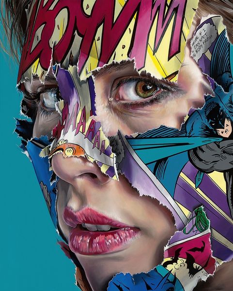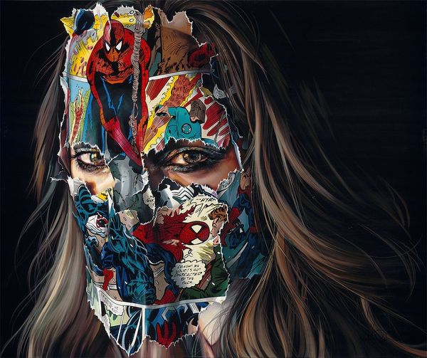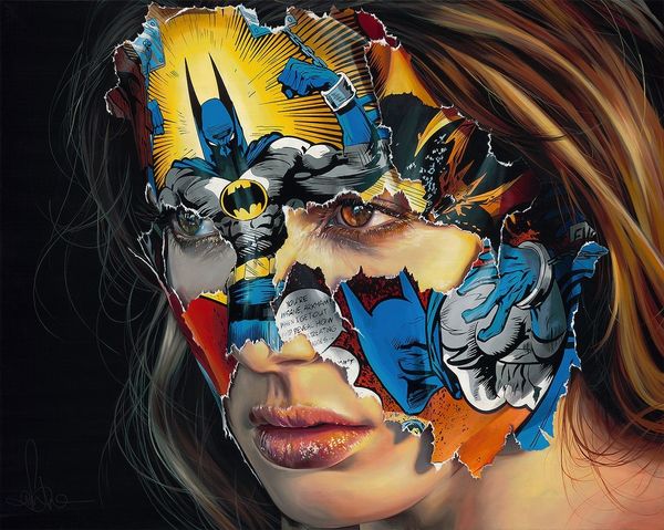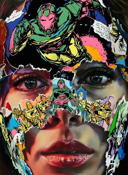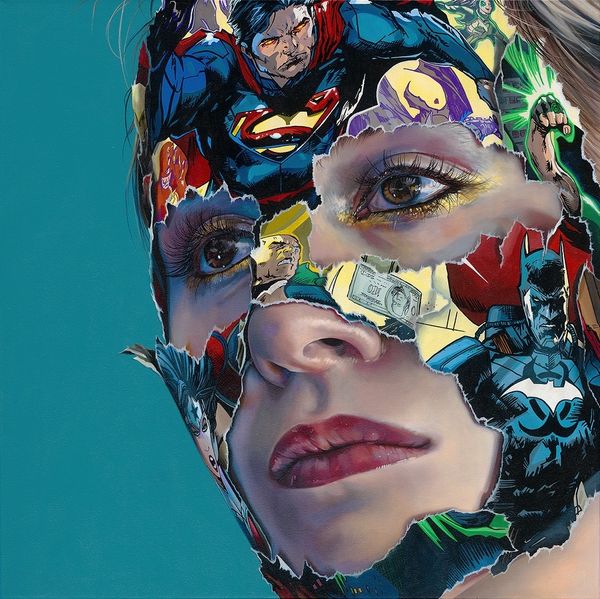 Sandra Chevrier made this powerful piece, La Cage et la larme du peintre, with mixed media, juxtaposing painted portraiture with comic book imagery. The way she tears and layers those comic fragments over the face is a kind of beautiful violence, isn’t it? I am really drawn to the push and pull between the smooth, almost classical rendering of the skin and the rough edges of the comic panels. The colors, too, play a part; that pop-art brightness against the softer tones of the face. Look at how one of the eyes is obscured but the other is not. It's a small detail, but it shifts the whole emotional landscape. It makes me think of how we construct our identities from fragments, from the stories we tell ourselves and the images we consume, how those things both reveal and conceal who we are. Chevrier reminds me a bit of artists like Wangechi Mutu, who also use collage to explore themes of identity and representation. Ultimately, this work is a reminder that art can hold multiple truths, inviting us to see the world in new and unexpected ways.