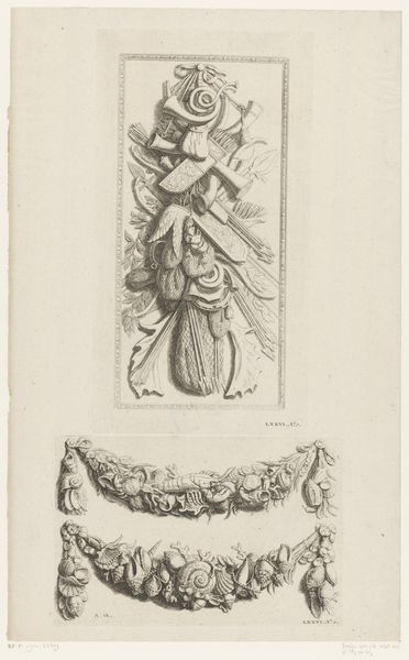 This is an etching titled *Ornament with Armor and Horses' Heads* by Stefano della Bella, made sometime in the 17th century. An etching is an image created by incising a metal plate with acid, then inking and printing it. The choice of etching speaks to the status of prints as luxury goods for the rising middle class. It allowed for detailed reproduction and circulation of images. Look closely, and you'll notice the material has influenced the artwork's appearance. The fine lines create a delicate texture, almost like a drawing. The print teems with symbols, the horses heads and armor speak of chivalry and power, a reminder of the social hierarchies of the time. Della Bella was not just an artist, but a skilled technician. The etching process itself, with its precise timing and chemical reactions, required a blend of artistry and craft. Understanding the material and making of this print helps us appreciate the intersection of art, craft, and commerce in early modern Europe.