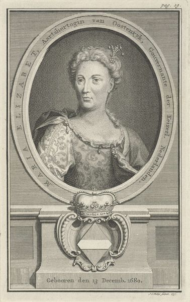 This is Pieter Schenk’s portrait of Martha Catharina Strykin, made with engraving. Schenk created this portrait during a time when the Dutch Republic was a major center for trade, science, and the arts, reflecting the prosperity and cultural sophistication of the era. Strykin's portrayal, framed within an oval, presents her as a woman of status, adorned in fine garments that reflect her position in society. Note the German text below the image, a lament that speaks to the transience of life and earthly beauty. The poem suggests a tension between the desire for remembrance and the inevitability of decay, a common theme in portraiture of this period. Consider how the portrait, while commemorating Strykin, also serves as a moral reflection on mortality. It makes you wonder about the artist’s intentions, in creating this portrayal to not only celebrate her life but also to remind us of the fleeting nature of existence.