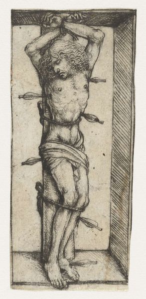 Editor: So, this is "Saturnus," an engraving by Willem Basse, dating from 1633 to 1672. It's an arresting image; the detail achieved with what seems like simple lines is incredible. What stands out to you about this print? Curator: Well, consider the labour involved in such detailed engraving, the sheer physical effort of translating the image onto the metal plate. Look at how the burin shapes not only the figure of Saturn, but also suggests the material qualities of flesh and fabric through the density and direction of the lines. What sort of tools were required? Where did the artist acquire these? Who owned the copperplate? These are all pertinent. Editor: That’s fascinating! I hadn’t thought about the physicality of it so much. So the value is as much in the craft, as the image created? Curator: Precisely. The print itself becomes a commodity, a product of skilled labor disseminated for consumption. This piece would likely have been circulated and reproduced; how does its dissemination change the perception of Saturn himself? The traditional myth becomes both aesthetic object, and trade item. Editor: It's like the image becomes democratized through the means of production. What was previously restricted for wealthy patronage could be more widely accessed through this method of reproduction, as material becomes accessible in a whole different way to a broader audience. Curator: Exactly! It shifts the power dynamic between artist, patron, and the viewing public. What was high art can also now be accessible. It is not just art anymore; but cultural information for sale and to share. Editor: I see, examining the artwork from that perspective, it opens a whole new dimension of understanding! I'll certainly view engravings with a different appreciation going forward. Curator: Indeed, seeing art as labor helps us appreciate the socio-economic conditions that birthed it.