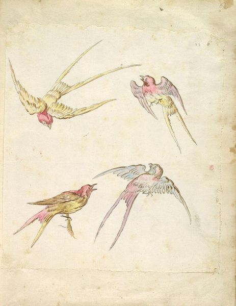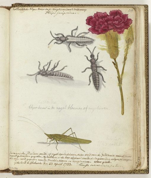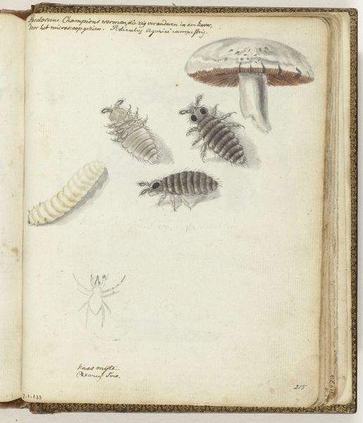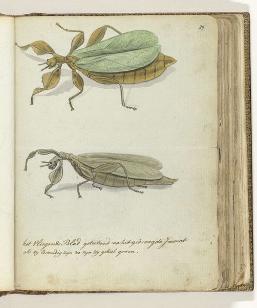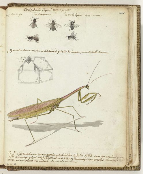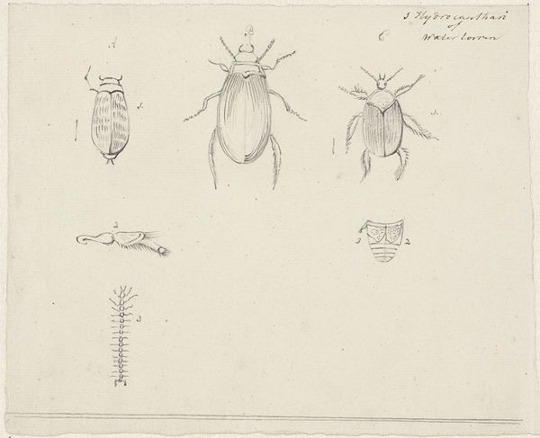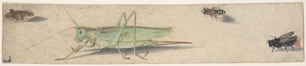 Jan Brandes created this page of insect drawings around 1784, using pen, ink, and watercolor on paper. These are not traditional 'art' materials, but rather those of scientific observation. The stark white ground highlights the delicate precision of his lines, carefully rendered in ink. Brandes then applied watercolor washes to bring the insects to life, capturing subtle tonal variations and textures. The thinness of the paper and the translucency of the watercolor create a sense of lightness, almost as if the insects might float off the page. This meticulous process speaks to the values of the Enlightenment, when naturalists sought to classify and understand the world through careful observation and documentation. Brandes's drawing blends scientific accuracy with artistic sensibility, elevating the study of insects to a form of aesthetic expression. Ultimately, this artwork reminds us that even the most seemingly objective representations are shaped by the materials, techniques, and cultural contexts in which they are made.