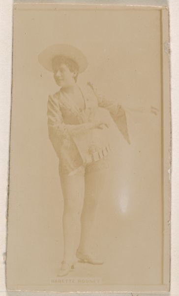 This photographic print of Kittie Mitchell was published in the United States as part of a series of actress portraits used to promote Sweet Caporal Cigarettes. It exemplifies the commercial intersection of performance, celebrity, and consumer culture in the late 19th century. Consider the visual codes at play here. The image presents Mitchell in a theatrical pose, emphasizing her physical appearance. This aligns with the period’s broader commodification of women in advertising and entertainment. Note the Kinney Brothers Tobacco Company's strategic use of actresses. This reflects the rising popularity of theater and the increasing appeal of celebrity endorsements to mass audiences. The card was designed to be collected and traded, fostering brand loyalty and integrating the product into everyday social interactions. To fully understand this image, one could explore the history of advertising, the rise of celebrity culture, and the social role of women in the late 19th century. The meaning of this simple advertisement lies in its complex web of social and institutional contexts.